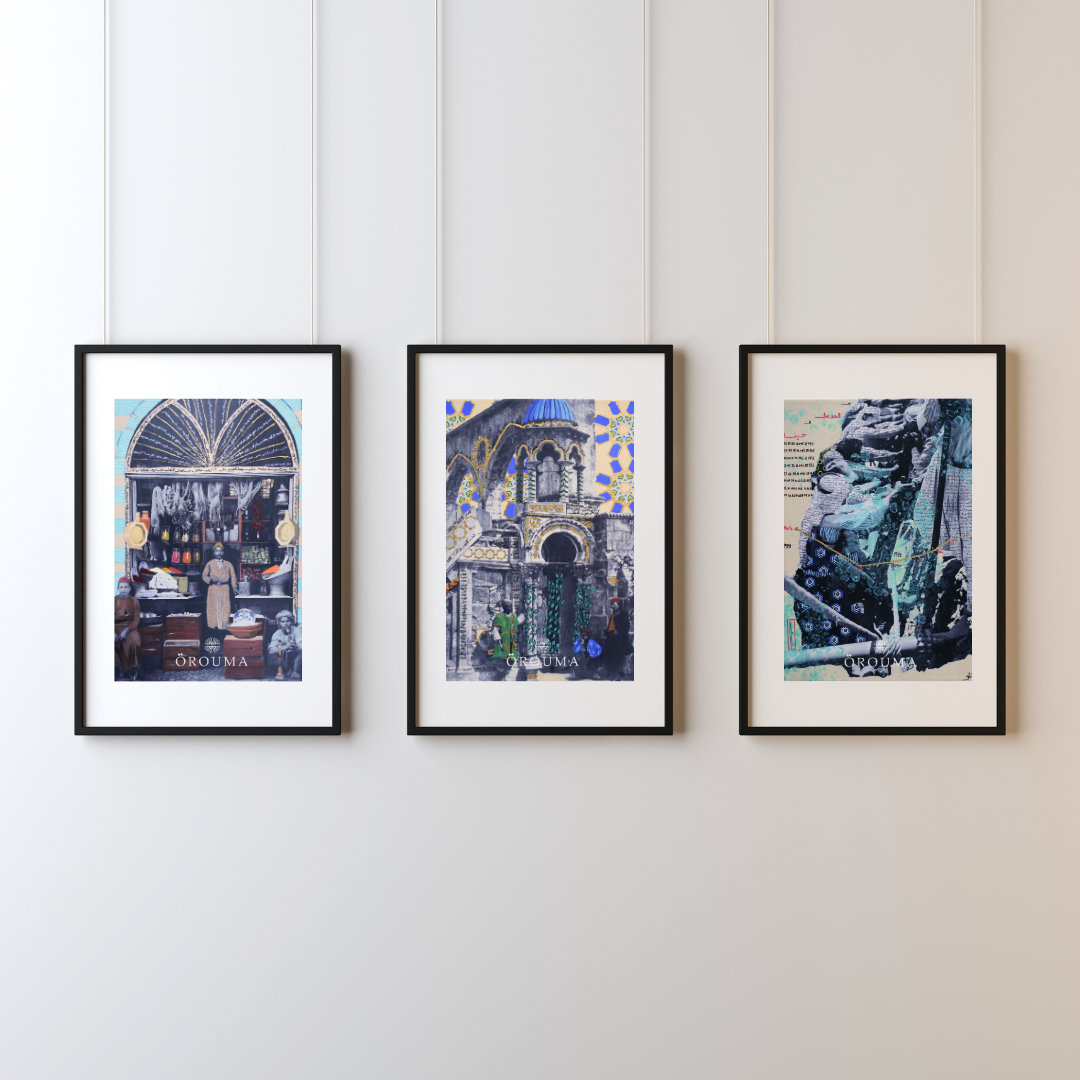 OP01 Orouma Blue Set of Three - Limited Print with Gold Leaf Finishes